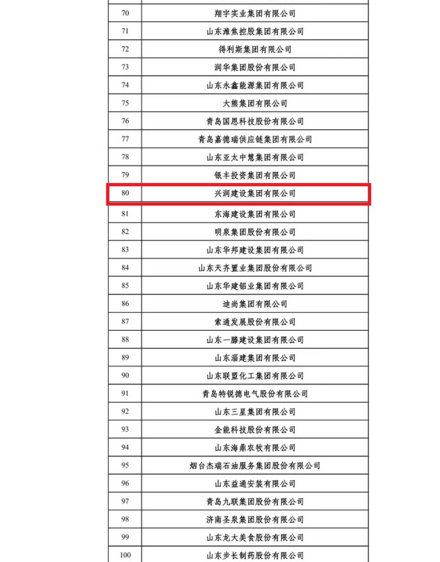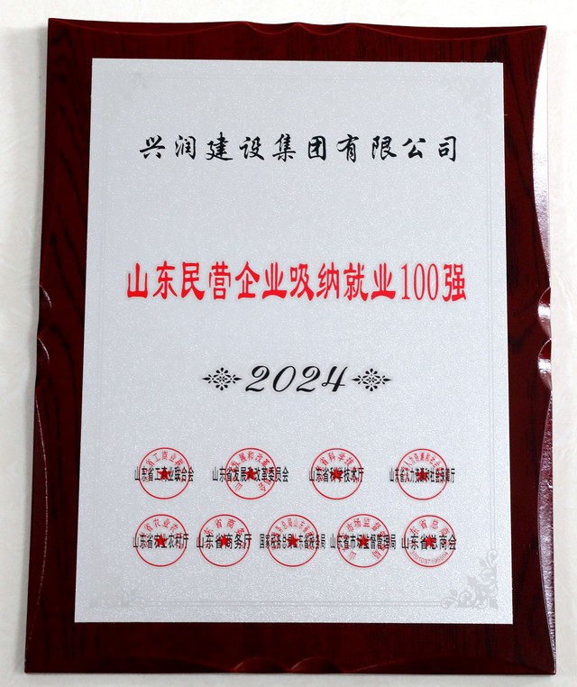 近日,由省工商联、省发展改革委、省科技厅、省人力资源社会保障厅、省农业农村厅、省商务厅、省税务局、省市场监管局共同组织开展了2024山东民营企业百强系列榜单发布活动。兴润建设集团有限公司再次入围,位列山东民营企业200强第80位,泰安市建筑业企业第1位。同时集团公司再次入选山东民营企业吸纳就业100强。