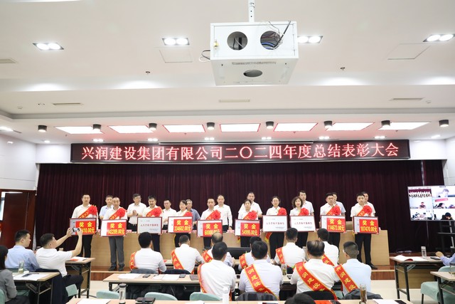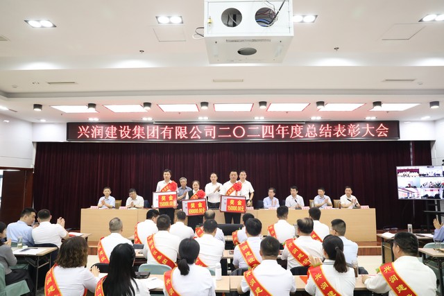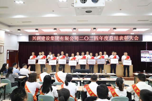 会上对在去年工作中做出突出贡献的先进单位和个人给予了隆重表彰。授予市政管网工程公司、建筑三公司等10个单位2024年度兴润功勋单位荣誉称号;授予市政管网工程公司、建筑三公司等10个单位2024年度上交贡献十强单位荣誉称号;授予安装三公司、精细炼化工程公司等3个单位2024年度创优领军先进单位荣誉称号;授予亿嘉润建设有限公司、兴润物业管理有限公司等3个单位2024年度优秀子公司荣誉称号;授予兴润房地产有限公司党支部、亿嘉润建设有限公司党支部等13个党支部2024年度先进党支部荣誉称号。